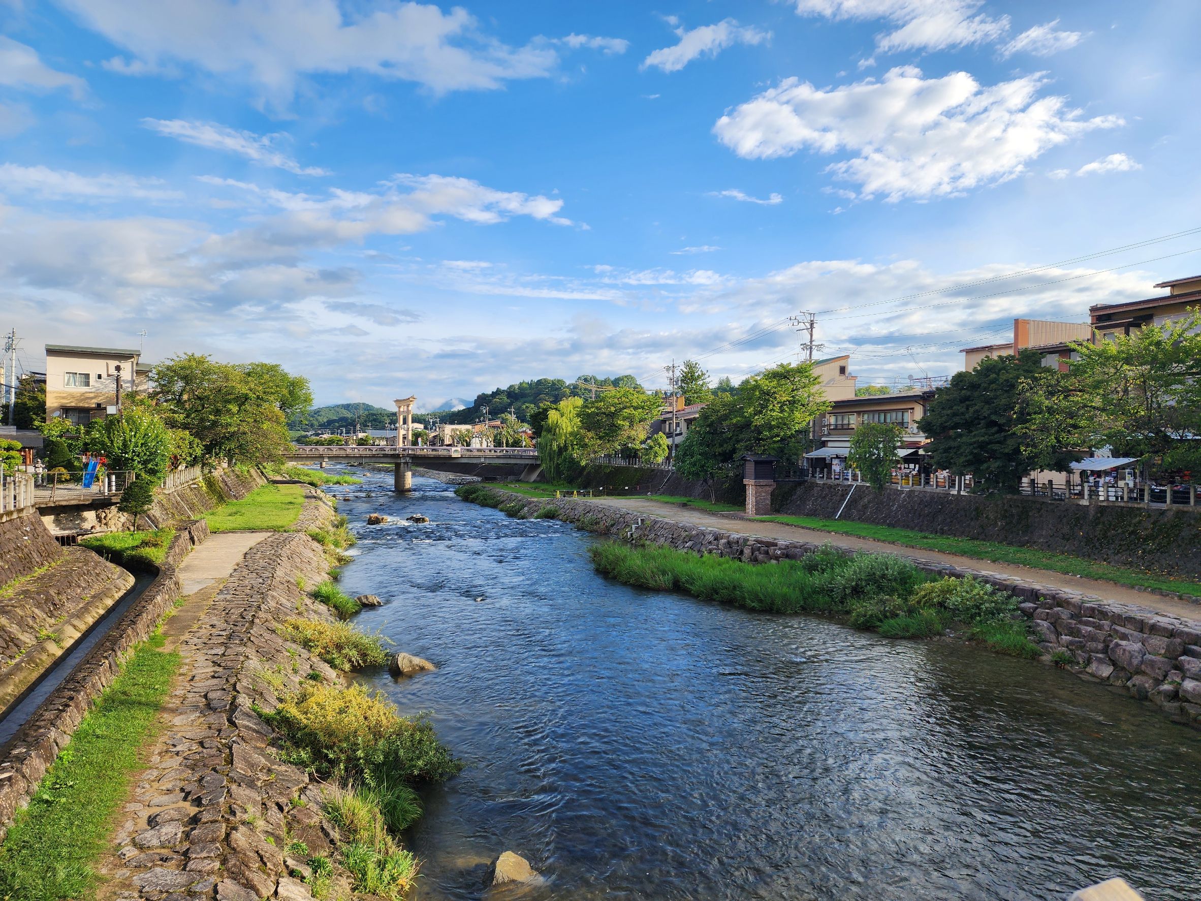 当施設のすぐ裏手には、飛騨高山のシンボルともいえる宮川が流れています。河川敷では四季折々の景色が広がり、朝は散歩やジョギング、昼は観光の合間の休憩、夜は川音に耳を傾けながらゆったりと過ごせます。徒歩数十秒で行ける癒しのスポットです。